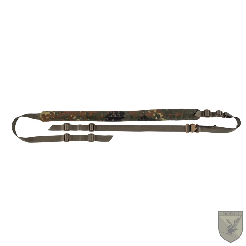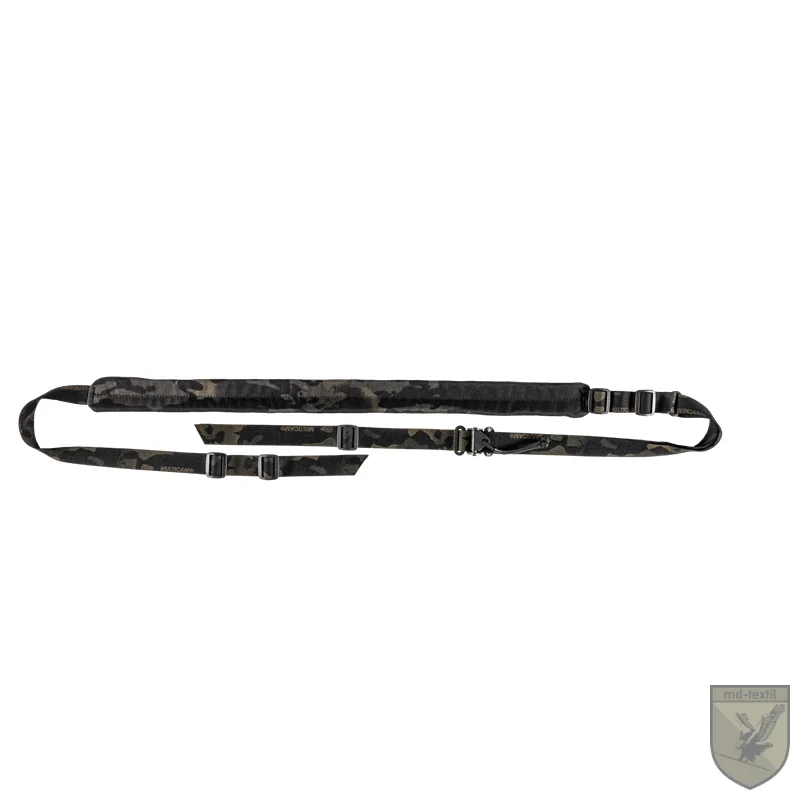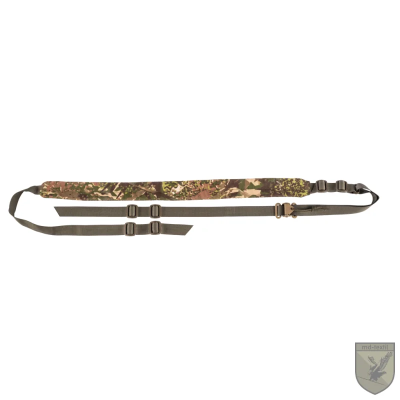 • Curea frontala blocata – sistemul de ajustare rapida este fix si prin urmare lungimea ajustata este nelimitata, arma putand fi lipita de corp, dar este mai greu de actionat