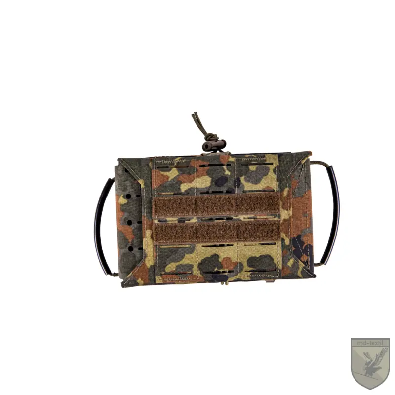 Un accesoriu care nu trebuie sa lipseasca din dotarea celor care utilizeaza armele de foc este trusa de prim ajutor – IFAK (individual first aid kit) Datorita dimensiunilor 185x120x50 mm poate fi introdusa in majoritatea buzunarelor laterale ale pantalonilor tactici. Se poate atasa de vesta tactica, centura sau rucsac gratie sistemului PALS+ / Molle. Este prevazuta pe laterale cu manere pentru extractie rapida. Tensiunea de strangere din chinga de asigurare se poate ajusta pentru un acces cat mai usor. In partea superioara si frontala are sistem de fixare PALS+ / Molle. In locul patchului IFAK de pe partea frontala se poate monta orice este compatibil cu flece.