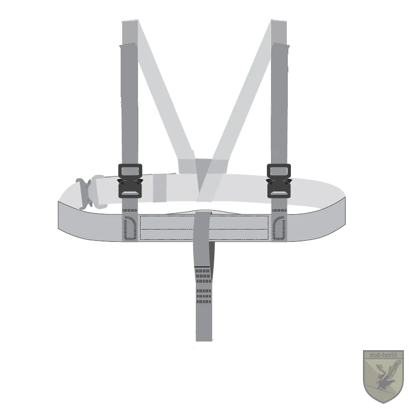 Pentru a preveni dublarea sistemelor de prindere la nivelul umerilor, vesta poate fi echipata cu bretele de umar MDT (link). Chingile hamului MGS sunt trecute prin aceste bretele si se prind direct de vesta nefiind necesar alt sistem de prindere